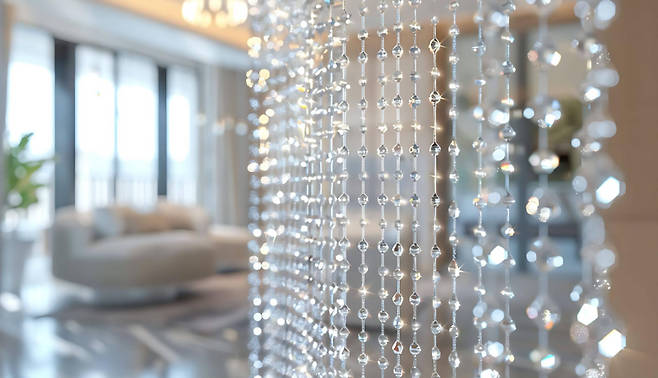 비즈 커튼이나 미러볼 장식은 짧은 기간 포인트 주기에는 재미있지만, 일상 공간에서 계속 사용하기에는 피로감이 생기기 쉽습니다.