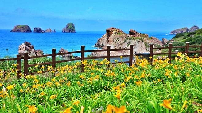 바다와 기암절벽, 숲과 전설이 어우러진 이 신비로운 섬에서는 매년 7월, 원추리꽃이 장관을 이루는 축제가 열린다.