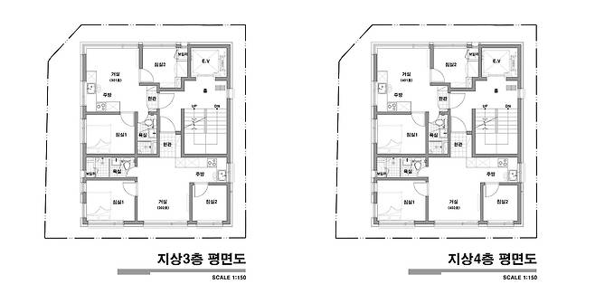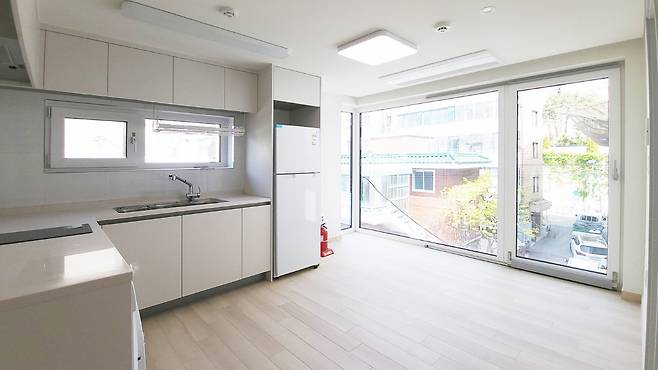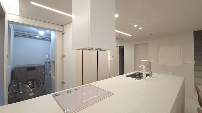 사실 부지가 워낙 작아서 1층에 법적 주차대수를 만족하는 주차공간에 상점까지 넣기에는 충분하지 않은 상황이었다. 배치 대안을 다양하게 정말 많이 검토하였고 그 결과 조건을 만족시키는 가장 효율적인 배치를 하게 되었다. 작은 땅에서 최대의 면적 확보가 관건 이었기에 확장형 발코니설계로 실내 공간을 최대로 넓게 사용할 수 있도록 했고 숨은 공간을 활용하여 작은 대지의 한계를 극복하고자 했다. 그 결과 연면적은 94평이지만 실사용면적은 161평으로 최대치로 설계하는데 성공하였다. 이렇게 해서 각각의 영역을 존중하면서 함께 공존하는 상가주택이 완성되었다.