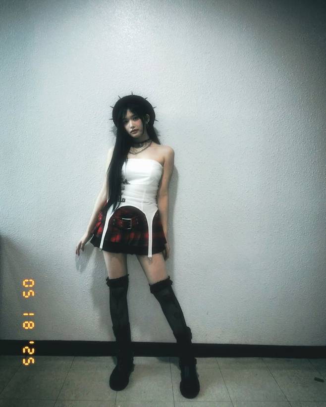 아이브 이서가 여름 분위기와는 대조적인 ‘고스로리 하이틴룩’으로 시선을 사로잡았다. 최근 공개된 한 장의 사진 속 이서는 흰 벽 앞에서 뚜렷한 스타일링을 선보이며 다크한 매력을 발산했다. 특히 그의 착장은 단순한 Y2K를 넘어 하이틴과 고스룩의 믹스매치라는 점에서 눈길을 끈다.