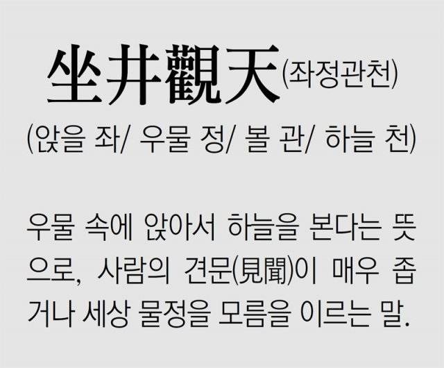 [신문과 놀자!/풀어쓰는 한자성어]坐井觀天(좌정관천) (앉을 좌/ 우물 정/ 볼 관/ 하늘 천)