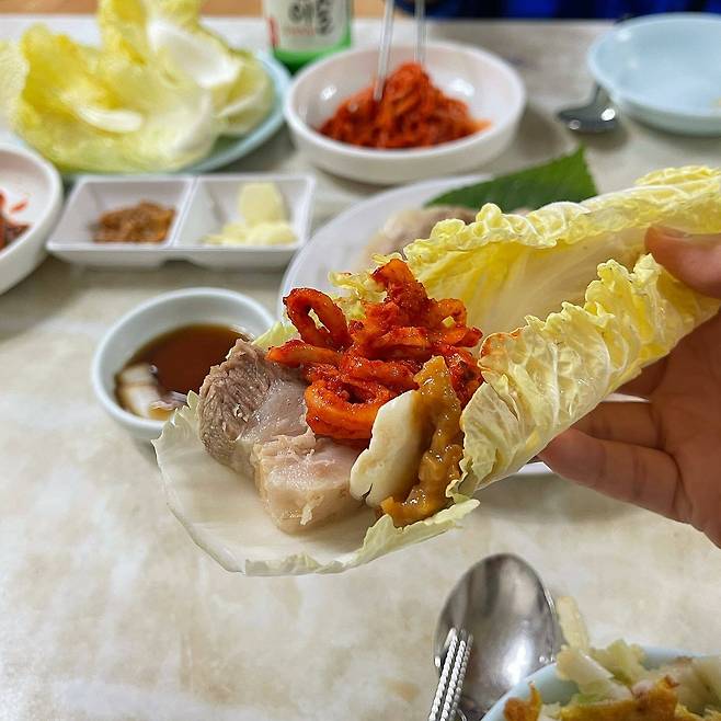 ✔메뉴: 사골칼국수 8,000원, 생배추보쌈(소) 18,000원