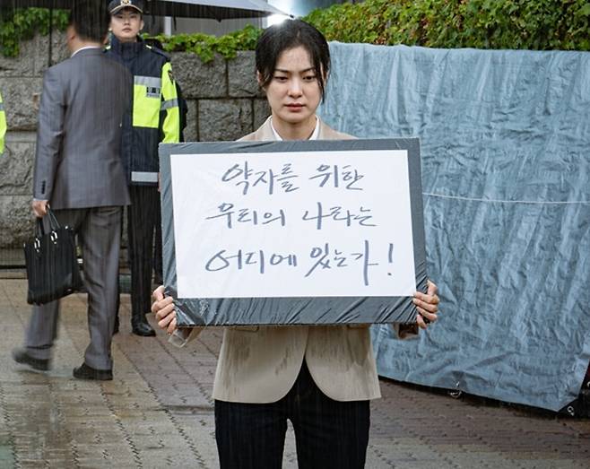 최종회에서는 깊이 있는 내공의 연기를 선보이는 배우 옥자연이 특별출연으로 등장해 기대를 더한다. 이와 함께 공개된 스틸컷에는 비 오는 거리에서 팻말을 들고 서 있어 이목을 집중시킨다. 과연 옥자연은 어떤 역할로 등장하는 것일까. 이한신은 그와 어떻게 엮일까. 최종회에 대한 기대감이 증폭된다.