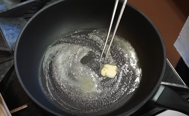버터를 녹이고 향신료와 허브를 넣어 소스를 만듭니다.