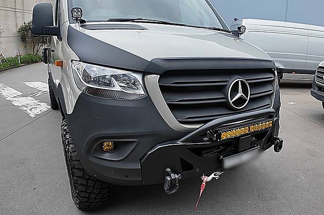 더 빅 리그의 베이스는 2024년형 사륜구동 메르세데스-벤츠 스프린터 170인치 롱 휠베이스 모델이다. 바디는 스톤 그레이 컬러로 마감돼 오프로드 특유의 강인한 분위기를 강조했고, 34인치 BF굿리치 머드 타이어와 아울 밴스 휠, Van Compass의 4.3 서스펜션 키트까지 더해져 어떤 지형에서도 흔들리지 않는 주행 성능을 확보했다. 전면에는 피스모 범퍼와 윈치, LED 라이트 바, 루프에는 라이트 포드와 함께 알루-캡 루프탑 텐트, 피암마 F80 어닝이 설치됐다.