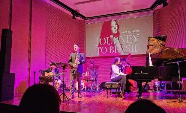 재즈 보컬리스트 겸 피아니스트인 마리아 킴이 14일 서울 서초 SCC홀에서 열린 '저니 투 브라질'도 아이스 아메리카노 같은 음악을 들려줬다.