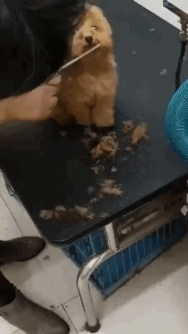 이날 강아지는 태어나 처음 미용을 하게 되었는데요. 강아지는 미용사가 손에 쥐고 있는 가위를 보고 무척 놀란 모양이었습니다.