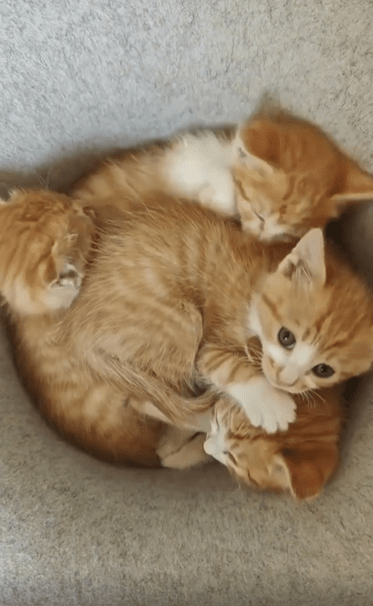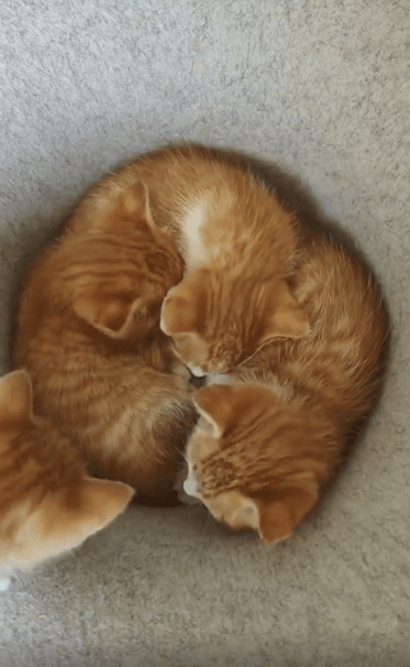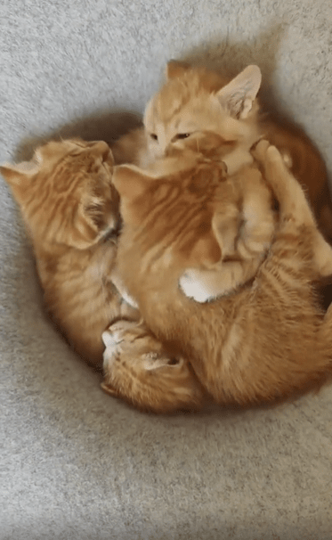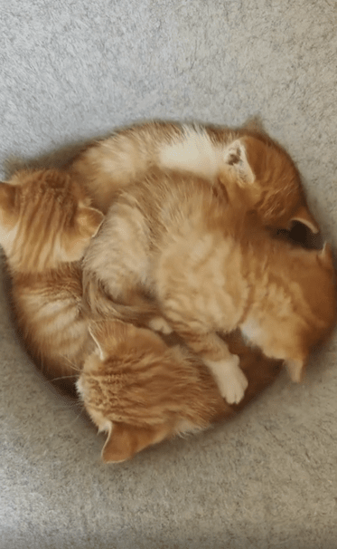 구멍 난 방석 안에 차곡차곡 쌓여가는 아기 고양이들, 이것이야말로 치유의 정석