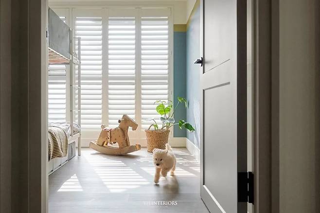 두 개의 어린이방은 서로 마주 보는 구조로 설계되어 필요에 따라 연결되거나 분리됩니다. 문 없이도 자연스럽게 이어지는 구조 덕분에 아이들이 함께 생활하기 좋고, 성장하면서는 각자의 공간으로 나눌 수 있습니다. 유연한 구조가 가장 큰 특징입니다.