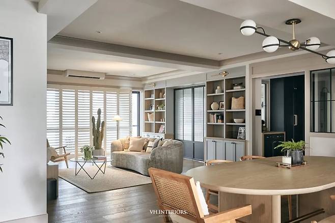 집에 들어설 때마다 공기의 차이가 느껴지는 공간들이 있습니다. 과도한 장식 없이도 여유로움이 묻어나고, 자연스러운 동선이 만들어져 생활이 편리해지는 곳. 이 아파트는 그러한 특징을 가진 미국식 모던 스타일로 설계된 가족형 주거 공간입니다. 두 명의 성인과 두 아이가 함께 살며, 각자의 공간과 가족의 시간을 조화롭게 공유할 수 있도록 설계된 점이 돋보입니다.