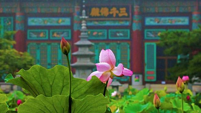 그리고 매년 6월 말이면, 그 고요한 풍경 위로 수려한 연꽃이 피어나며 또 다른 계절의 얼굴을 드러낸다. 연못을 채우는 연꽃의 색감과 절의 곡선은 따로 꾸미지 않아도 한 폭의 풍경화를 완성한다.