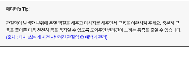 이상 증세를 보이면 바로 동물 병원에서 수의사의 확인을 받는 것이 좋으나, 사연의 주인공처럼 빠른 방문이 어려운 상황도 있습니다. 해당 증상이 또 발현되고, 발작이 아닌 근육·관절 통증으로 보인다면 증상이 나타나는 부위를 가볍게 마사지해 주세요. 증상이 나타나는 발을 위쪽으로 올려서 편안하게 해주는 것도 도움이 됩니다.