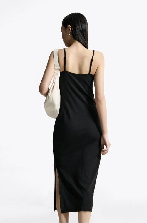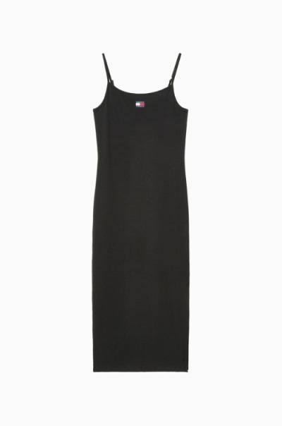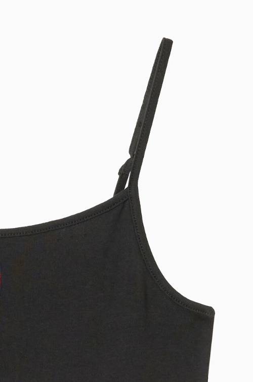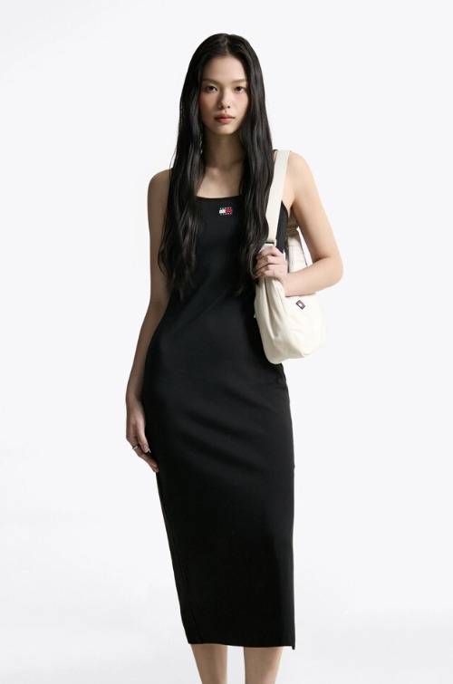이 원피스는 면과 폴리우레탄 혼방 소재로 만들어져 얇고 촘촘한 립 짜임이 특징이에요. 덕분에 세련된 실루엣을 연출할 수 있답니다. 끈나시 형태의 슬리브리스 디자인이라 여름에도 시원하게 입을 수 있고, 스타일리시함까지 놓치지 않았어요. ✨ 앞면 중앙에는 타미진스의 플래그 자수가 포인트로 들어가 있고, 한쪽에는 슬릿 디테일이 더해져 활동성을 높이면서도 은근한 섹시함까지 연출할 수 있다는 점! 😉