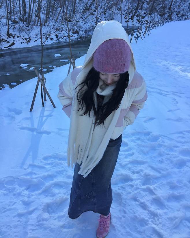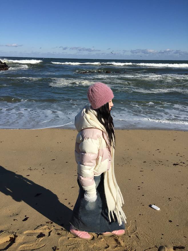 청치마를 입음으로서 핑크의 과한 느낌을 중화시킬 수 있었던 것 같아요