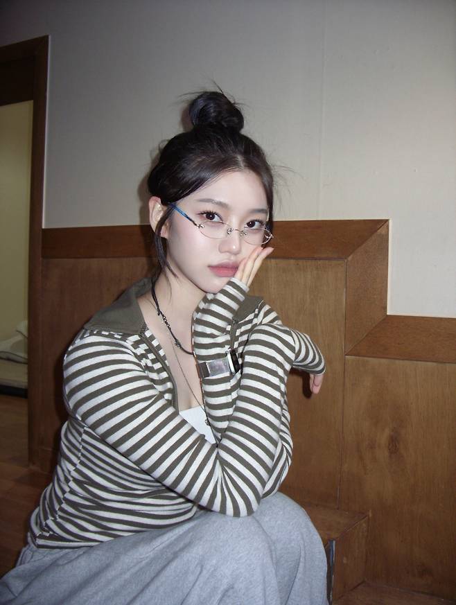 또 y2k 분위기를 더 내고싶어서 안경과 목걸이에 포인트를 주었습니다