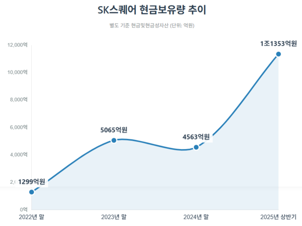 SK스퀘어가 자체적으로 가진 현금이 1조원을 넘어섰다. 대규모 배당 수익과 포트폴리오 매각으로 확보한 풍부한 현금을 바탕으로 인공지능(AI)·반도체 분야 신규 투자는 물론 주주환원도 적극 추진할 계획이다.