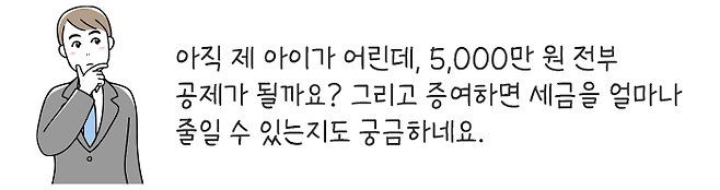 주식을 증여받게 되면 재산을 무상으로 받게 되어 증여세 부과대상이 되지만 10년 단위로 적용할 수 있는 증여재산공제금액(배우자 6억 원, 자녀 5,000만 원) 이내의 금액을 증여하면 증여세가 없습니다.