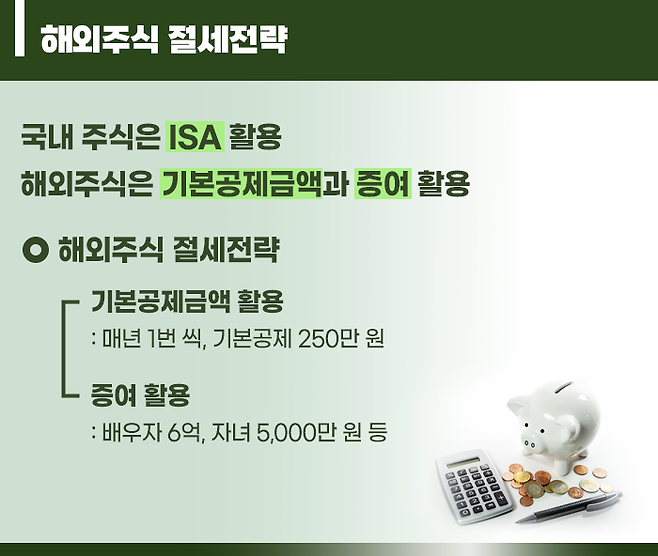 해외주식인 경우에는 기본공제금액과 증여를 활용하는 방법이 있습니다.