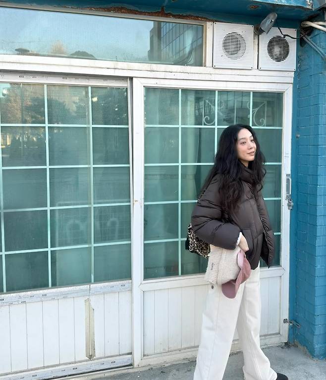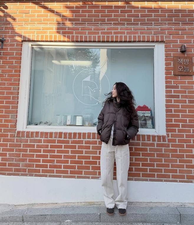 사진 속 정려원은 광택감이 도는 다크 브라운 컬러의 숏 패딩에 깨끗한 화이트 와이드 팬츠를 매치해, 편안하면서도 세련된 겨울 스타일링을 보여주고 있는데요.