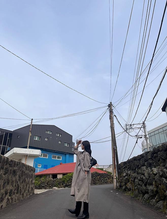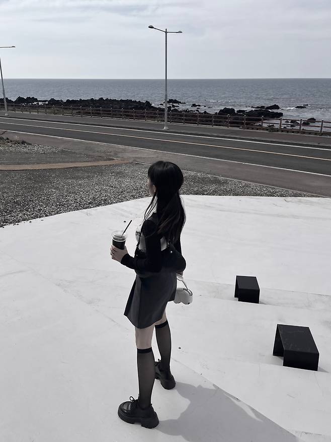 현무암 색에 맞춰 코디도 무채색으로 맞춰보았어요