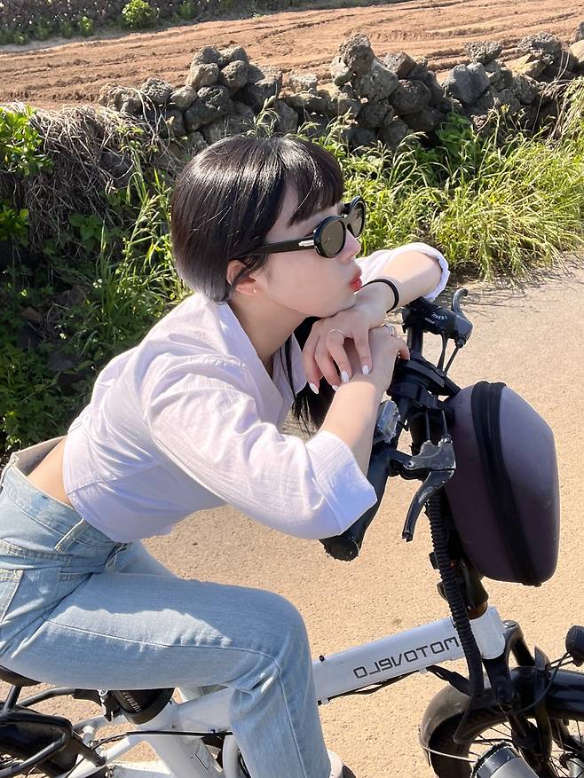 흰 크롭셔츠로 심플하고 깔끔한 느낌을 줬어요