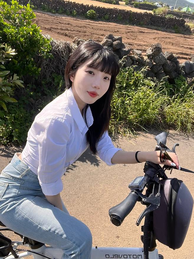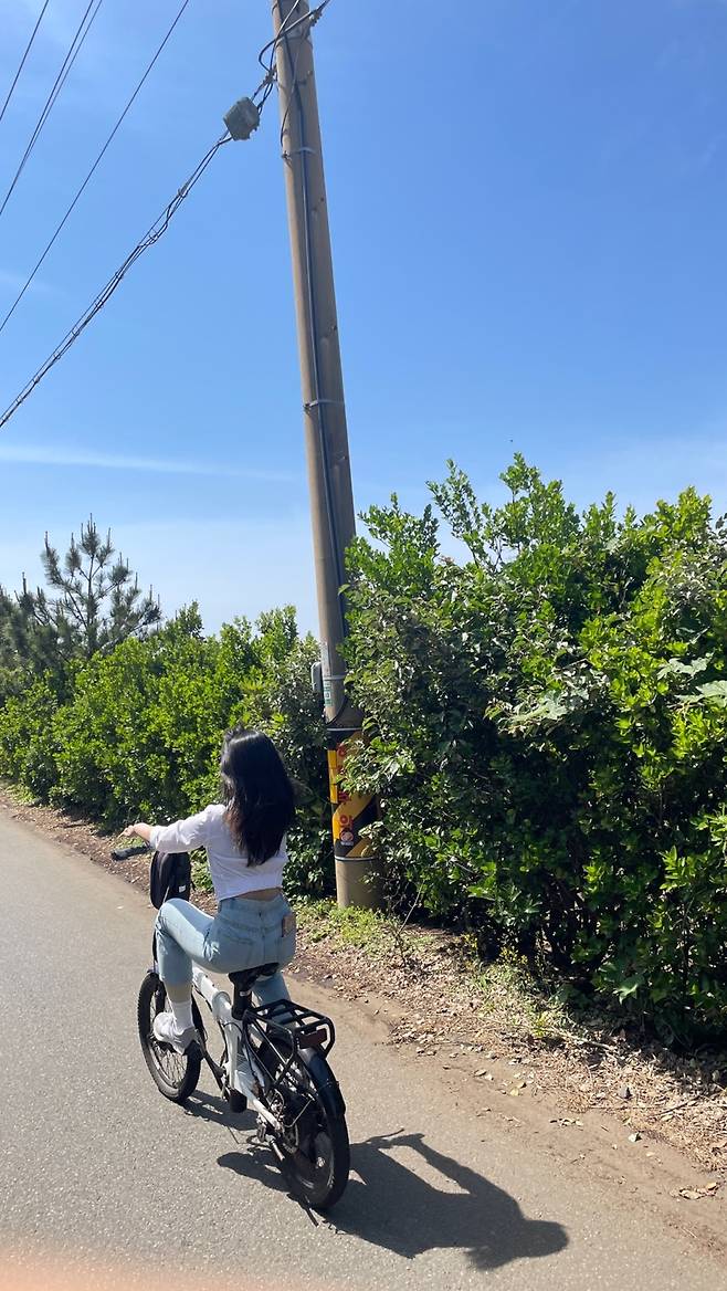 자전거를 탈 예정이기 때문에 바지를 입어줍니다!