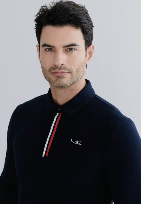 화이트와 네이비 카라티셔츠는