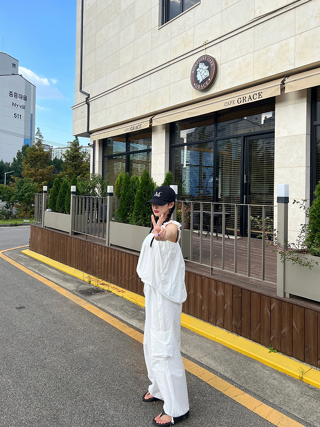 그리고 쾌적함과 사랑스러움을 동시에 담아낸 올화이트 코디까지.
