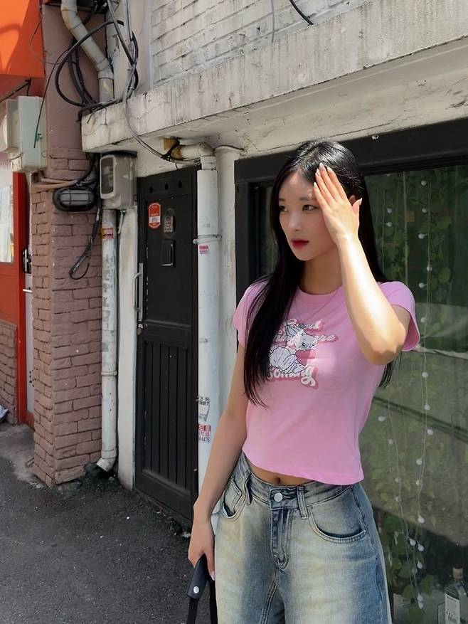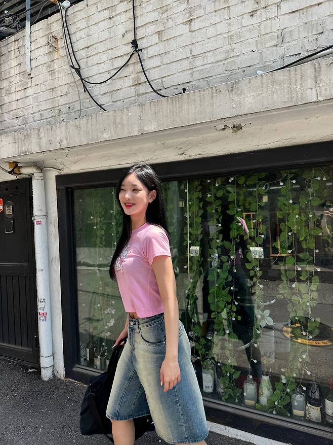 첫 번째 룩은 러블리하면서도 컬러가 돋보이는 Y2K 감성이 매력 포인트.