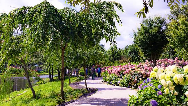 이곳엔 앤드리스썸머, 핑크아나벨 등 38종 5만 4,000본의 수국이 정원을 가득 메운다.