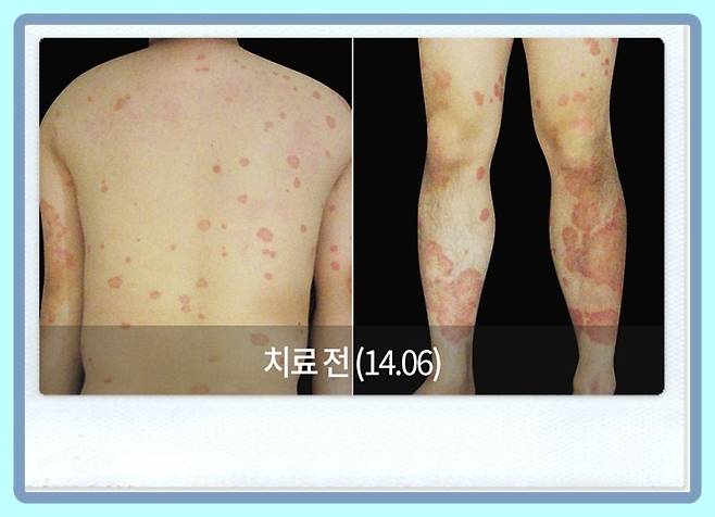 • 주요 증상: 전신에 붉은 반점, 심한 가려움증