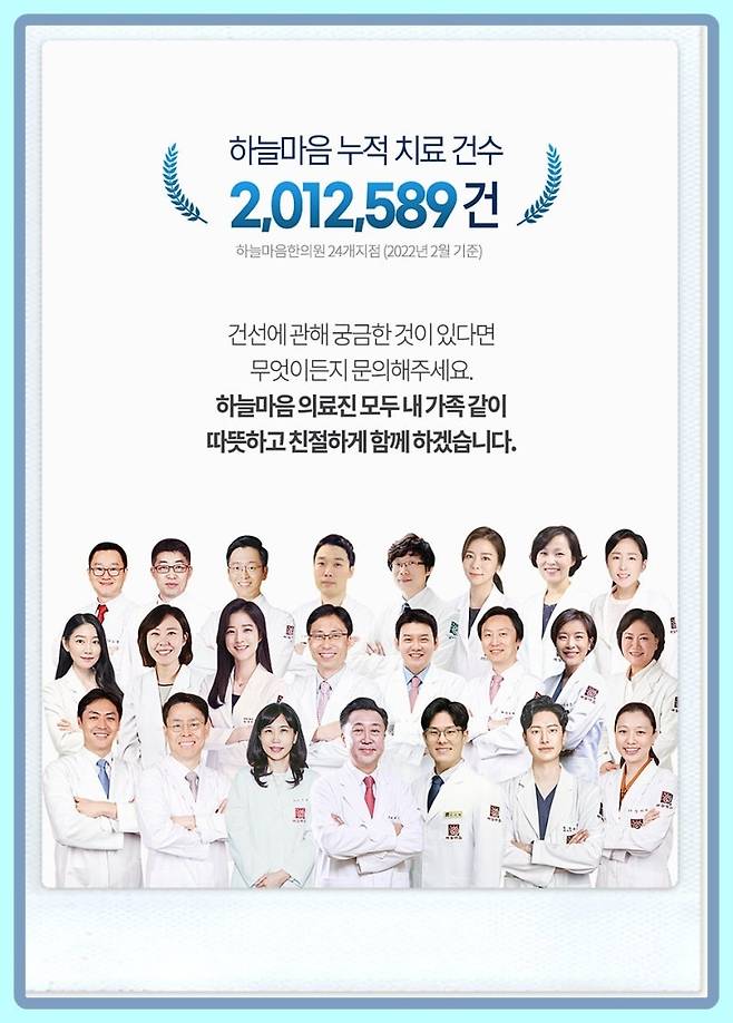 피부 건강을 일시적으로 회복하는 것에서 그치지 않고, 지속적인 관리를 통해 재발을 방지하는 것이 중요합니다. 하늘마음에서는 사후 관리를 지원하는 행복주치의 시스템을 운영하고 있습니다.