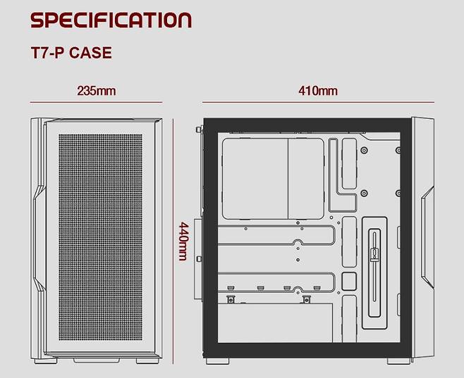 - CPU 쿨러 장착 크기 185mm, 그래픽카드 장착 크기 340mm, 파워 장착 크기 160mm