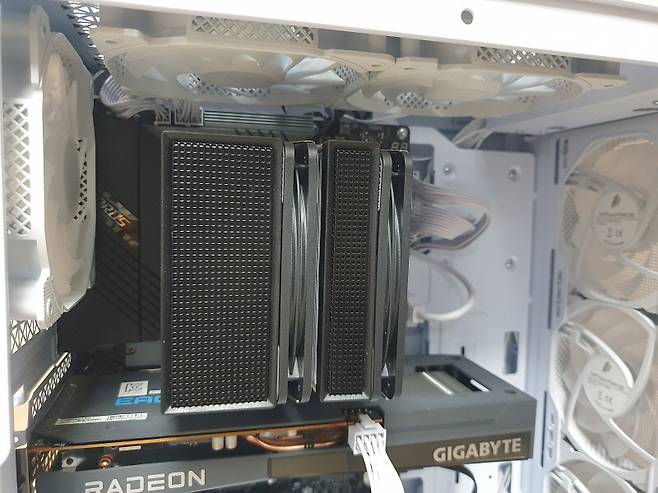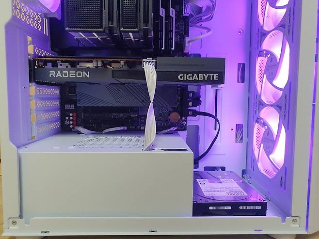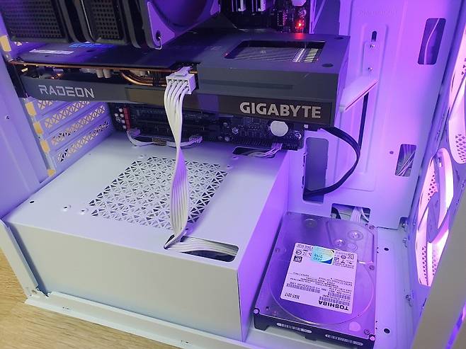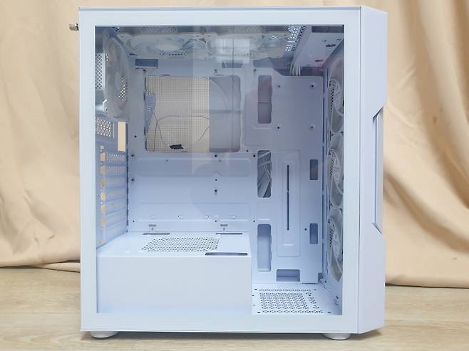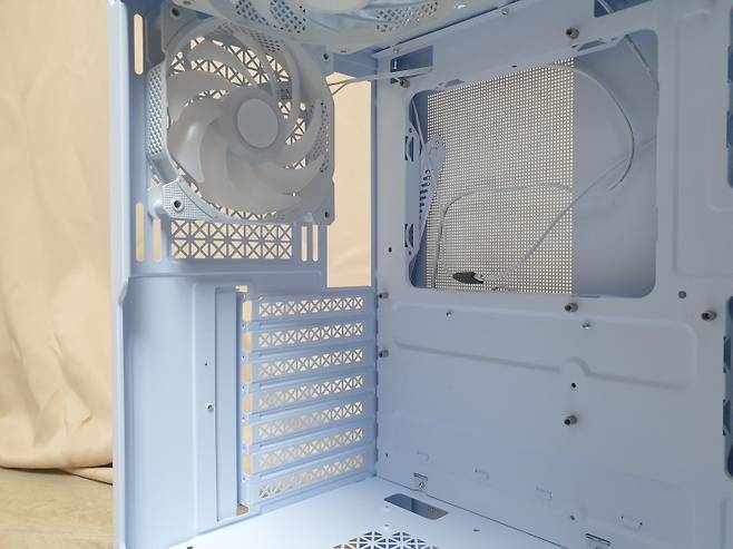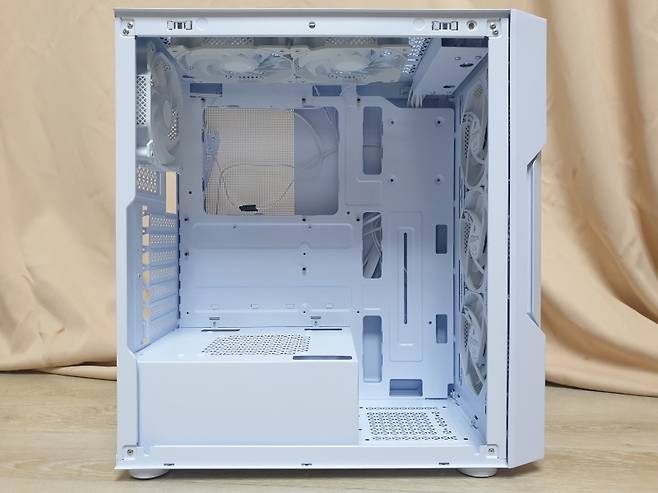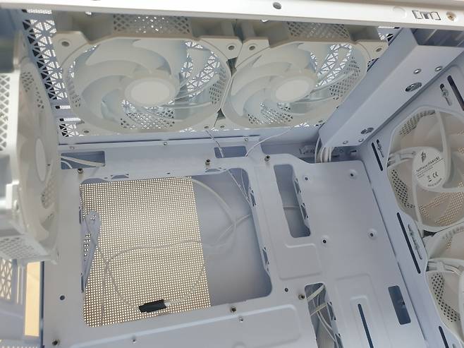 쿨링팬 6개 기본 장착으로 케이블들이 많기는 하지만, 공간이 넉넉해서 잘 정리할 수 있습니다.