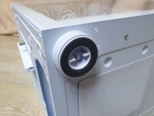 우측 철제 패널은 절반 정도만 부분 메쉬 타공되어 있습니다.