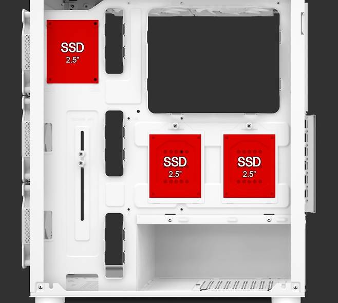 - SSD 최대 3개, HDD 최대 1개, 전면부 및 상단부에 240mm 라디에이터 장착