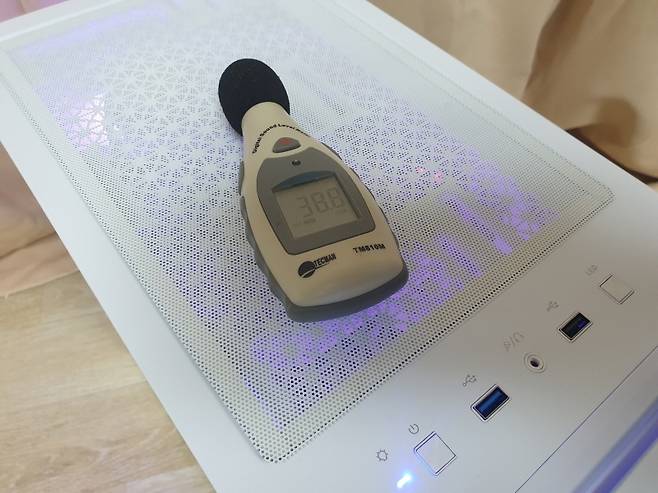 방 안에 소음은 36.8dBA 입니다. 패널 모두 닫고, 대기 상태에서 38.8dBA 수치가 나왔습니다.