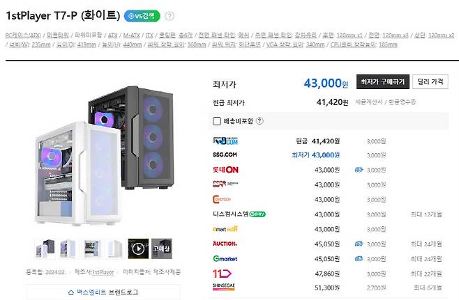 안녕하세요. 이 번에 소개해 드릴 제품은 1stPlayer T7-P (화이트) PC 케이스 입니다.