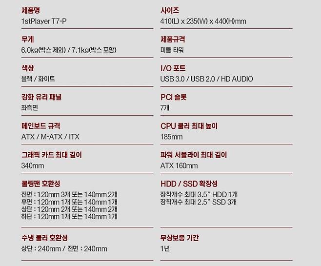 ▶퍼스트플레이어(1stPlayer) T7-P (화이트) 미들 타워 케이스 특징..