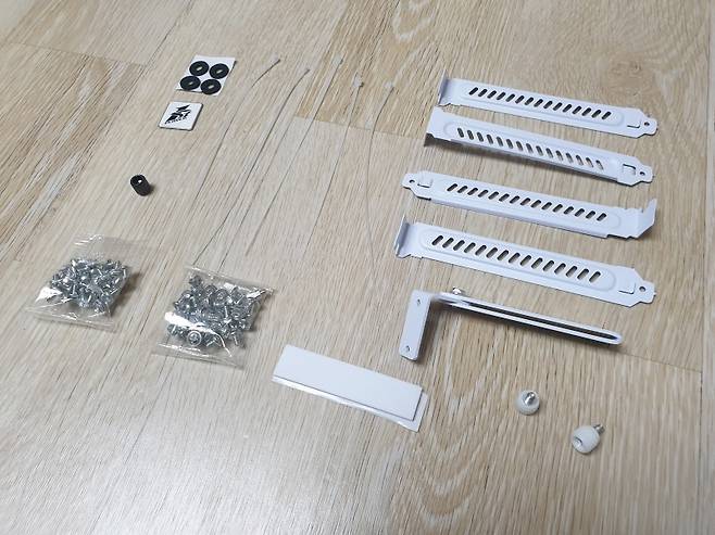체결 나사, 스탠드오프, 케이블타이 5개, PCI 슬롯 커버 4개, 그래픽카드 지지대 세트가 있네요.