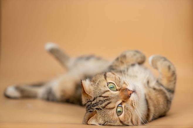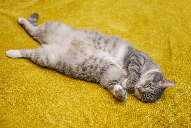 고양이가 집사 앞에서 ‘쿵’ 하고 쓰러지는 건, 깊은 신뢰와 편안함의 표시이다. 고양이는 야생에서 포식자이자 피식자여서 어지간하면 경계심을 늦추지 않는다. 그럼에도 급소인 배를 일부러 드러내며 쓰러진다는 건, “울 집사 앞에선 방어할 필요가 전혀 없어”라는 메시지.