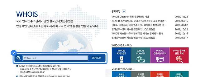 ▲ 후이즈(whois) – 한국인터넷진흥원에서 운영하는 사이트로 도메인 등록이 가능한 지 확인할 수 있어요.
