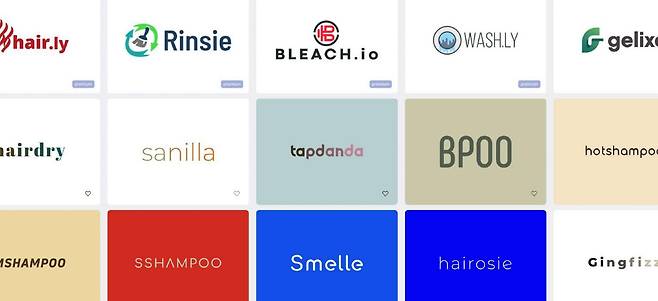 검색창에 ‘shampoo’라고 검색해 봤는데요. 해당 단어가 포함된 네이밍뿐 아니라 연관된 단어를 조합해 쇼핑몰 이름을 추천해 주고, 브랜드 로고까지 이미지로 보여주고 있어요. 아이디에이션 단계에서 활용해 보시면 좋을 것 같아요.
