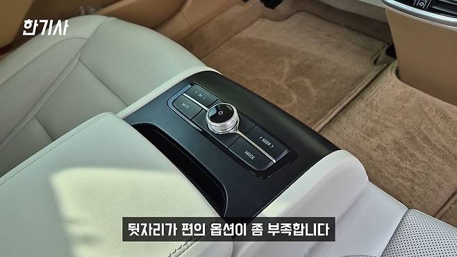 더 뉴 그랜저 IG의 단점은 뒷자리가 조금 아쉬운 점이 있습니다. 저는 그랜저라는 차를 평가할 때는 뒷자리도 평가 요소라고 생각을 하거든요. 이 차가 뒷자리가 굉장히 넓은 걸로 유명하잖아요. 근데 사실 이게 겉보기에만 좋습니다. 뒷자리 편의 옵션이 좀 부족합니다.