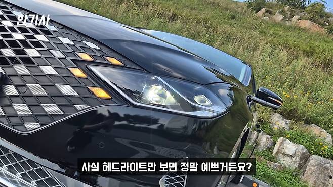 또 이 차가 정말 전면부가 또 아쉬울 수 있는 게 사실 헤드라이트만 보면 정말 예쁘거든요? 근데 전면 다이아몬드 그릴 부분을 보면 이게 뭔가 싶어요. 사실 또 요즘 그랜저 GN7 한번 보고 보면 이 차가 또 선녀긴 합니다.