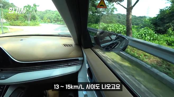 또 다른 단점을 하나 뽑자면 아무래도 연비를 들 수가 있겠죠. 사실 근데 그랜저 3.3 사면서 연비를 따지는 게 의미가 있겠냐 할 수도 있지만, 연비가 안 좋은 건 사실이니까요. 또 강원도 철원에서의 주행 환경과 고양시 일산에서 주행 환경이 또 다르기 때문에 그 점을 비교해서 연비를 설명드리자면 강원도에서 공도 주행을 하면 보통 연비가 12~13km/L 사이로 나옵니다. 거기는 사실 공도랑 고속도로의 차이가 별로 없어요. 그리고 고속도로 가면 13~15km/L 사이도 나오고요. 진짜 조건 좋을 때는 16km/L 까지도 한번 본 것 같습니다.