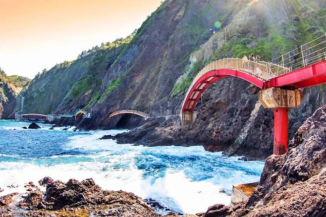 경상북도 울릉군 울릉읍 도동길 34에 위치한 이 산책로는 도동항에서 출발해 행남마을과 행남등대를 잇는 1.6km 구간으로 구성되어 있습니다. 해안 절벽을 따라 조성된 교량 위를 걷다 보면 파도 소리와 해송의 그림자가 함께합니다.