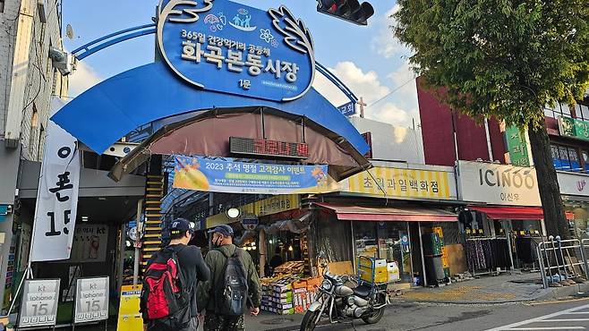화곡 영양족발은 5호선 화곡역 3번 출구로 나와서 도보로 5분 이내 거리에 있는 화곡본동시장 안에 있다. 대로변에 서있는 화곡본동시장 간판 아래서 보면 바로 안쪽에 있어 찾기는 어렵지 않다.