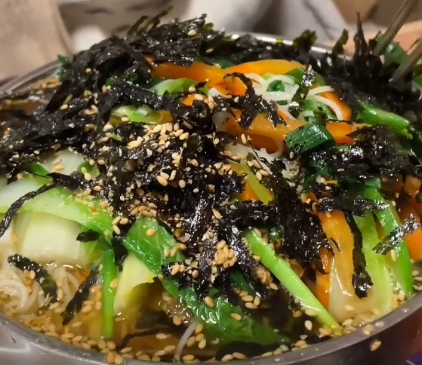 ▶ 애호박, 당근, 배추, 부추, 김가루, 깨 등 고명이 듬뿍 올라 더욱 만족스럽습니다.