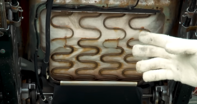 침수가 된 직후에는 크게 티가 나지 않겠지만, 시간이 지나면서 차량 실내가 습기가 있는 상태로 건조를 하거나 방치를 하게 되면 이처럼 녹이나 부식이 발생을 하게 되는 모습을 볼 수 있습니다.